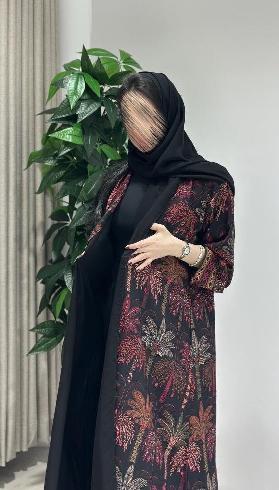 - اسم المنتج: عباية بنقشة نخيل ملونة
