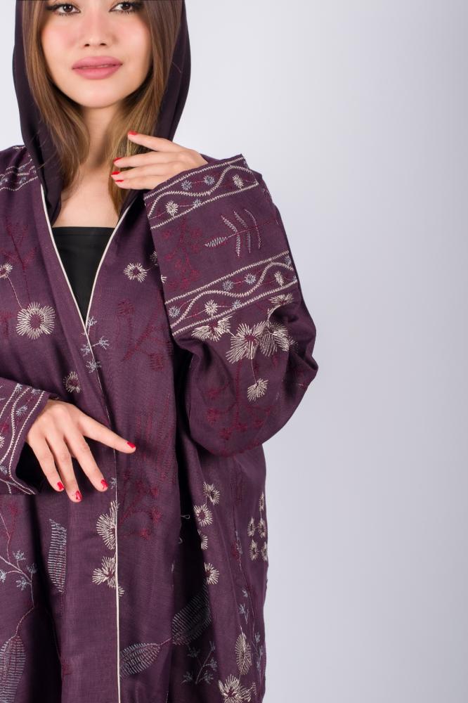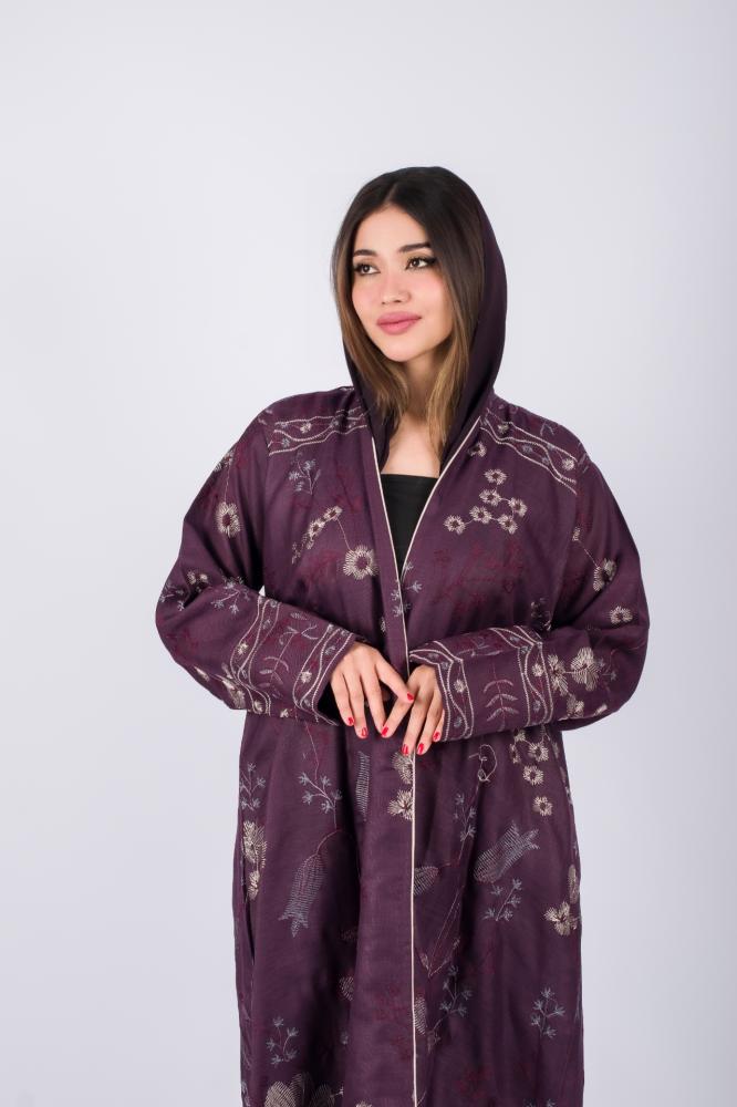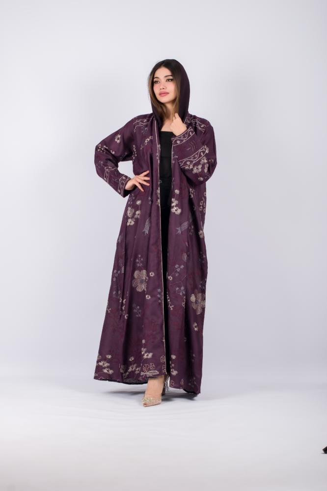 - الاسم: عباية عنابية مطرزة بالورود الأنيقة